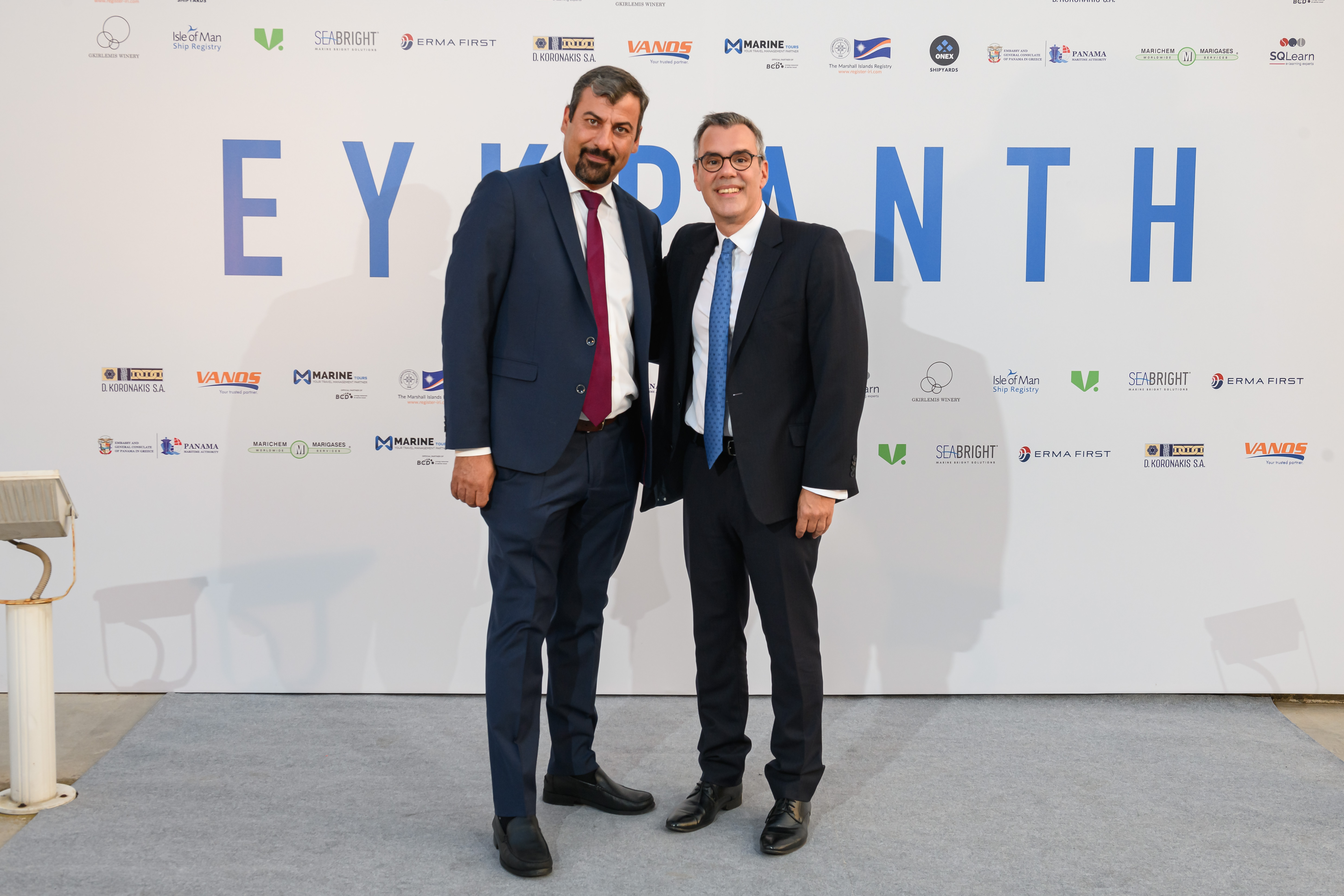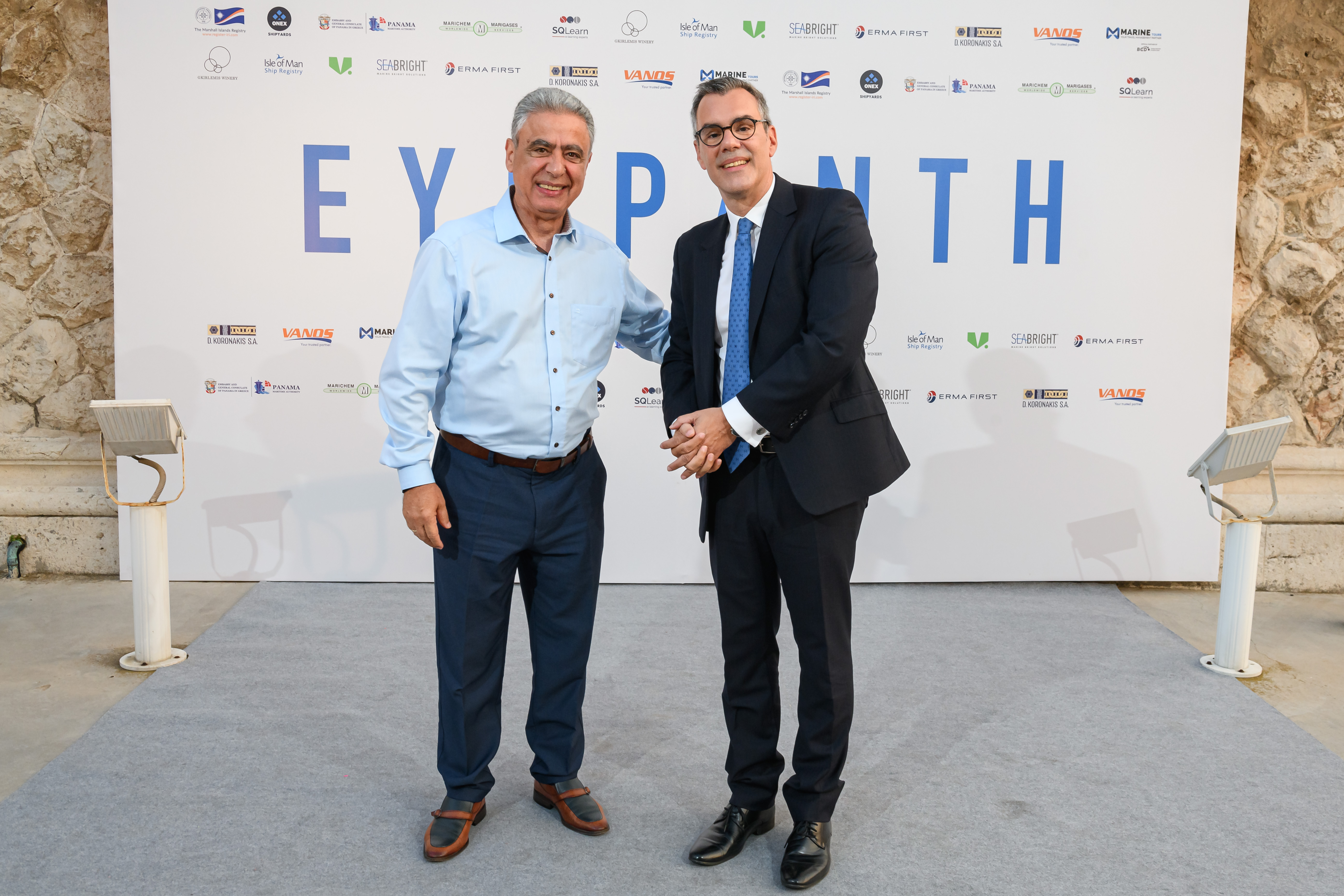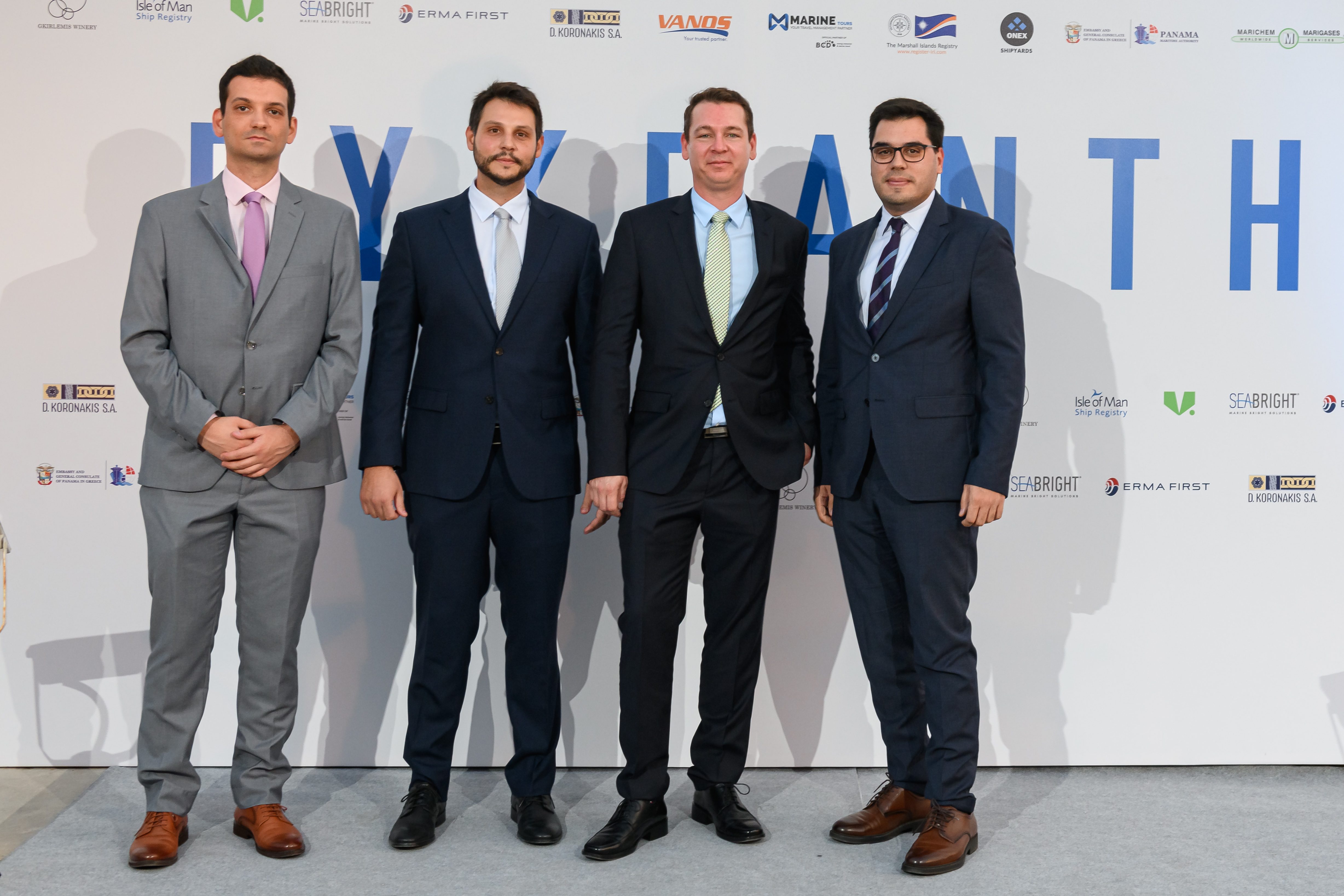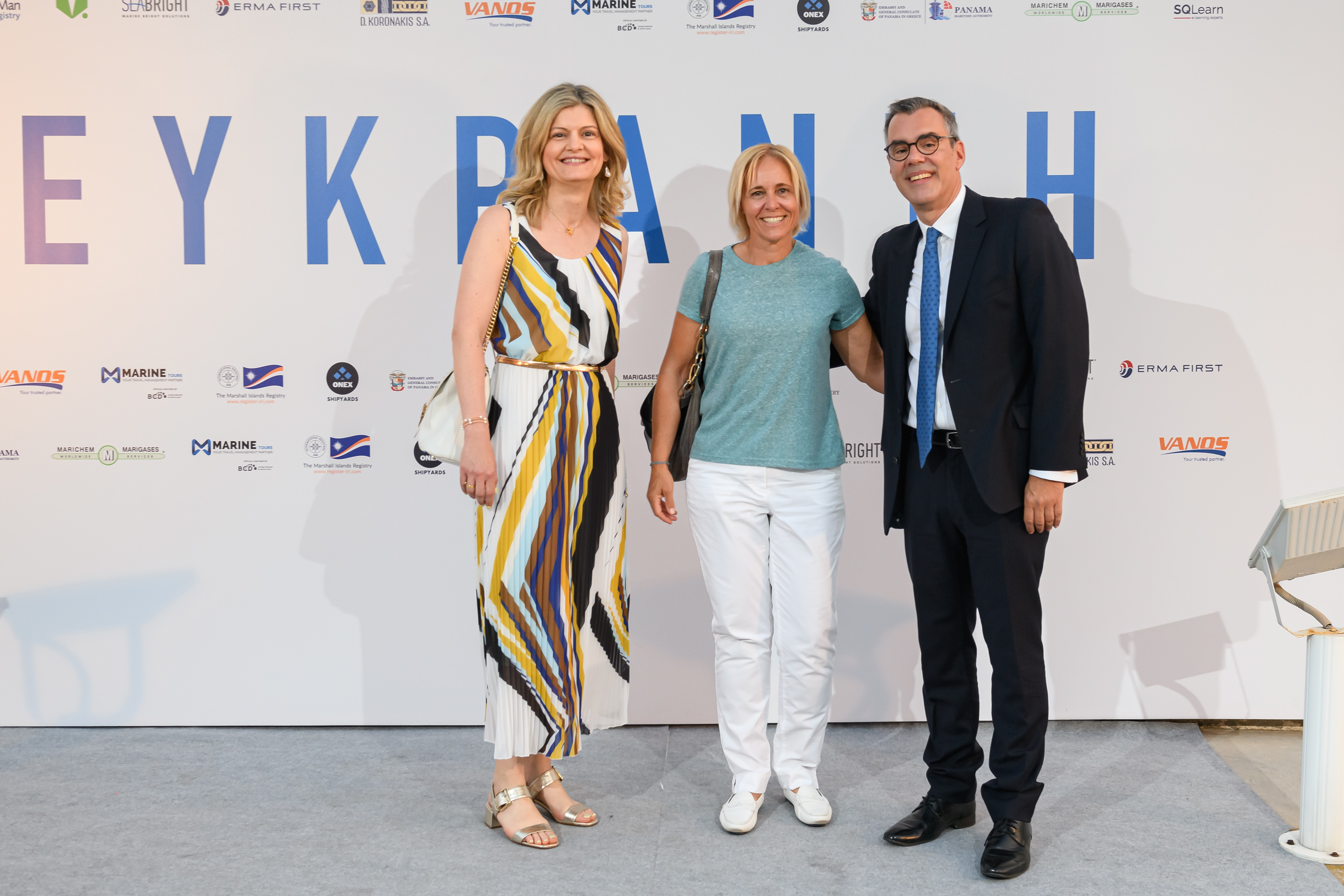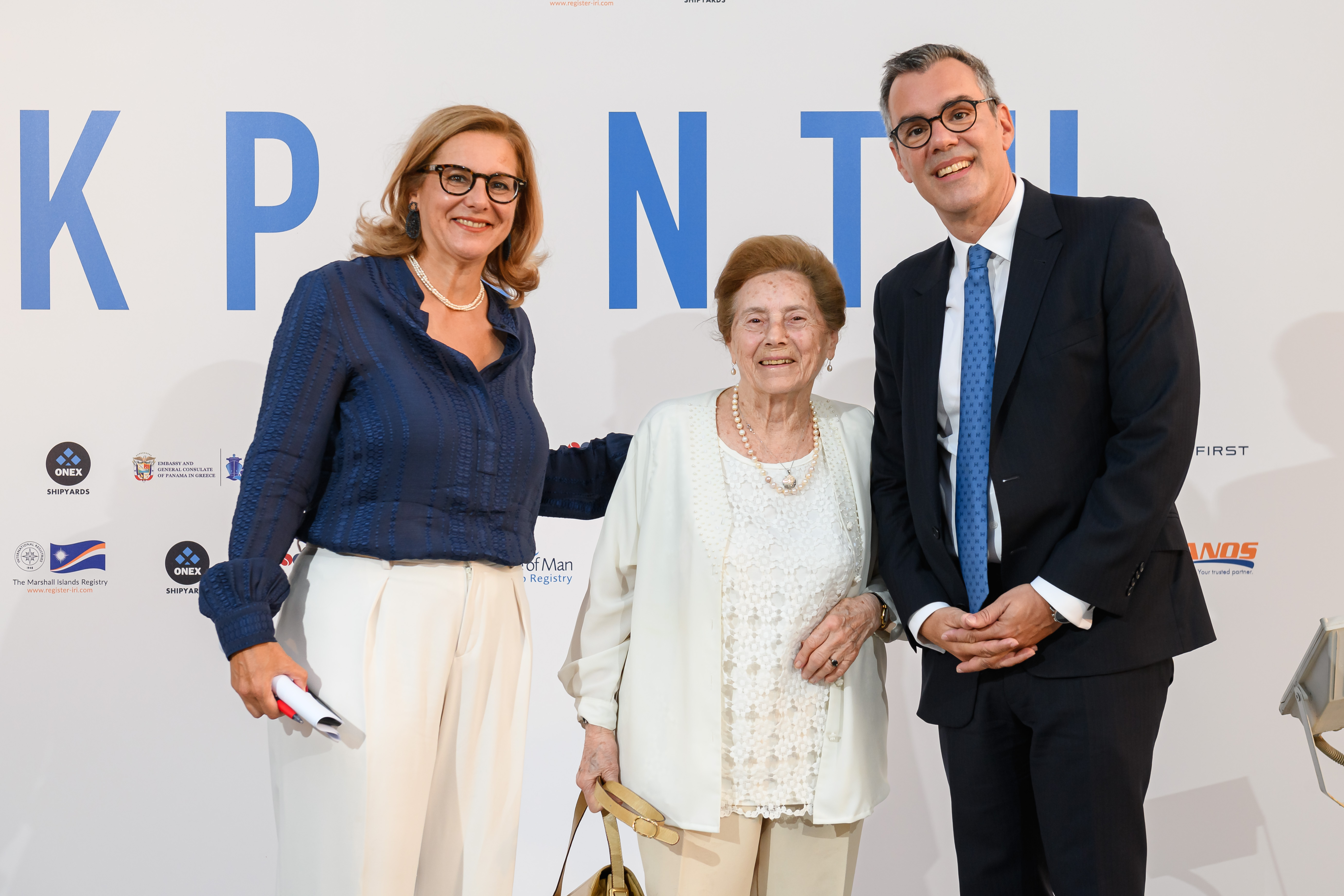 Ο κ. Αντώνης Φαράκλας, Διευθύνοντας Σύμβουλος των ναυτιλιακών επιχειρήσεων Charterwell Maritime S.A., Chartworld Shipping Corporation και Chartworld Maritime Management Corporation του Ομίλου Κολλάκη μαζί με την κ. Ελένη Πολυχρονοπούλου, Διευθύντρια Επιχειρηματικής Ανάπτυξης της ERMA FIRST και τον κ. Κωνσταντίνο Σταμπεδάκη Co-Founder & Managing Director της ERMA FIRST, χορηγού του βραβείου.